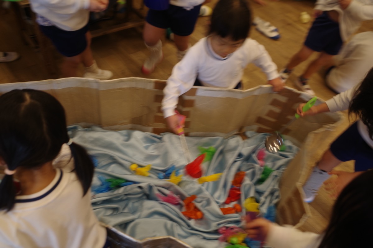 あっという間に(タイトルクリックで毎回写真) 01/17/2024 最終更新日時 : 08/09/2024 ozasa-admin [Show slideshow] 1 2 ► 年中少がお店屋さんに取り組んでいる中、年長さんは、あっという間に’ゲーム屋さん’を作って、年中のお友達を招待。年中さんは、何やら火花が出るものを作ってキャンプファイヤーに点火。全学年絵本借り、年少さんが借りているのか小さなお友達が借りているのか?水曜日の園庭開放のうち月一回は先生達と遊ぶ「ちびっ子集まれ」でした。最後に凧を作って走り回ってました。今週からマラソン大会まで週二回のマラソンです。(悪天候もあるので中止も度々ですが、見守りのお手伝いよろしくお願いします。)一層元気に走ります。 \ 最新情報をチェック / FacebookXBlueskyHatenaCopy