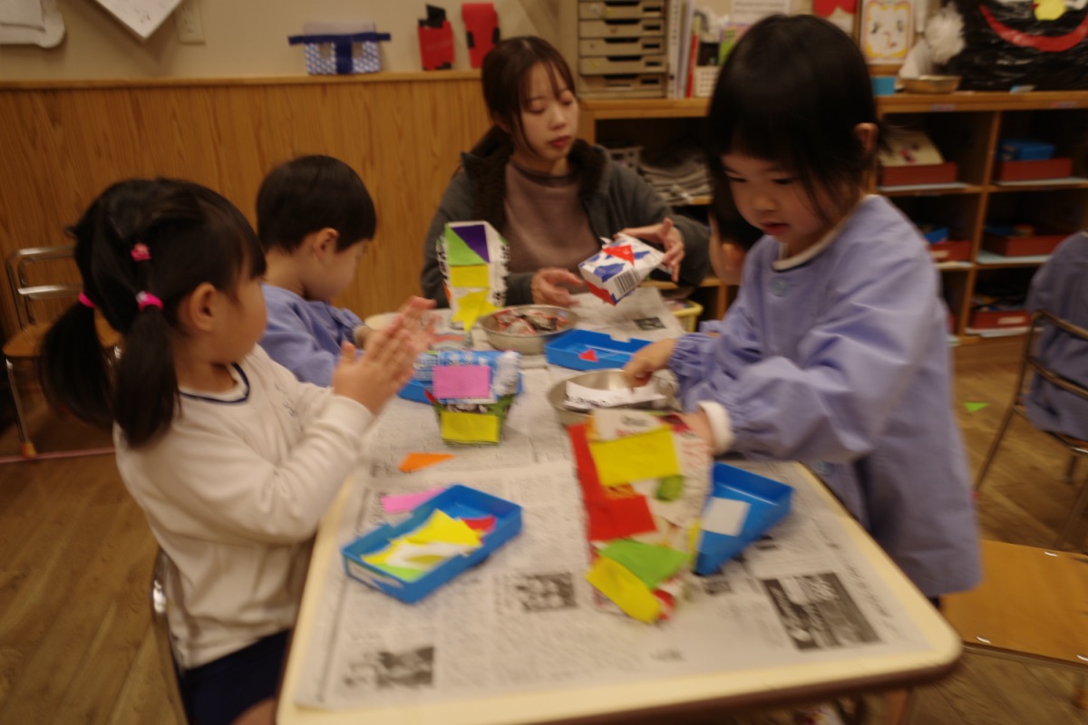 寒いぞー(写真アリ) 01/23/2024 最終更新日時 : 08/09/2024 ozasa-admin [Show slideshow] 小雪が舞う中、屋内活動が中心の一日。年長さんは明日の縄跳び大会に向けて練習したり、息抜きに外を駆け回ったり。年中はお店屋さんごっこや大縄飛び。年少さんは、お店屋さんごっこ用のお財布作成。 明日は、縄跳び大会と来年度保護者教室です。大雪でない限り実施の予定(縄跳びはホール開催もあり)。変更など連絡はアプリまたはHPで \ 最新情報をチェック / FacebookXBlueskyHatenaCopy