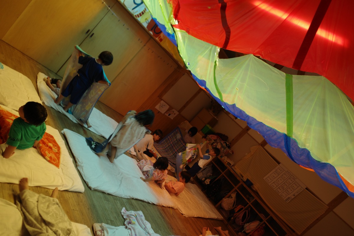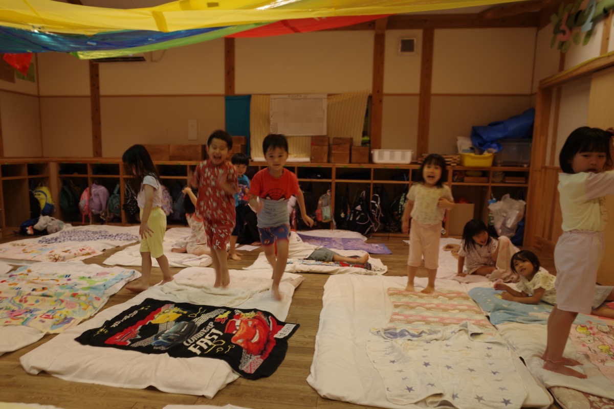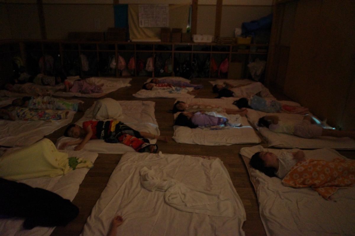 雨も上がり、キャンプファイヤー!そして焼マシュマロをいただきました。お風呂に入った後は、ホールで影絵を楽しんで、おやすみです。