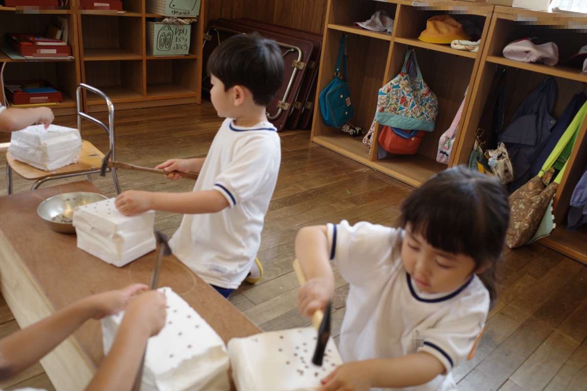 消防隊だぞ。 05/30/2025 最終更新日時 : 05/30/2025 ozasa-admin [Show thumbnails] マラソン、年少さんはお父さんお母さんと一緒に走りました。終わった後はタオルを使っていろいろ。年中さんは、釘打ちの次の段階に。発砲スチロールに打ち込みます。もうひとクラスは、消防隊?!になりきり遊び。年長さんは、誰の絵を描いているのかな?年少少さんは、不思議なものをプチッとすると。 昨日分は、今朝、別途、ひよこ組と各クラス分の2本アップしてます。 \ 最新情報をチェック / FacebookXBlueskyHatenaCopy