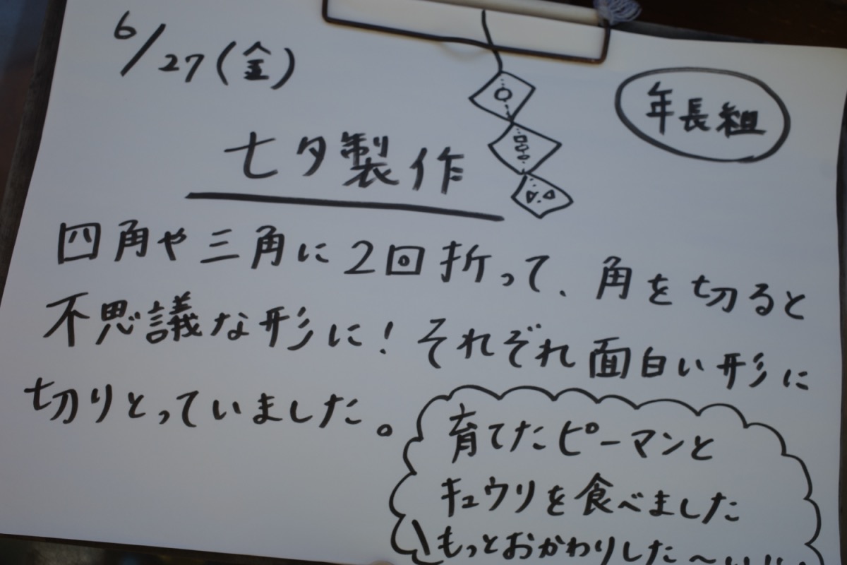 今日もいろいろ 06/27/2025 最終更新日時 : 06/27/2025 ozasa-admin [Show slideshow] 1 2 3 ► 年中はフィンガーペイント。楽しくなって、手や顔やお友達や先生まで。年少は平均台を使ったり、ごっこ遊びをしたり。育てたキュウリも気になって収穫。年長さんは、七夕飾り作ったり。収穫したピーマンやキュウリを食べたり。年少少は、水遊び。年長さんのキュウリのお裾分けをいただきました。朝は皆でマラソン。 \ 最新情報をチェック / FacebookXBlueskyHatenaCopy