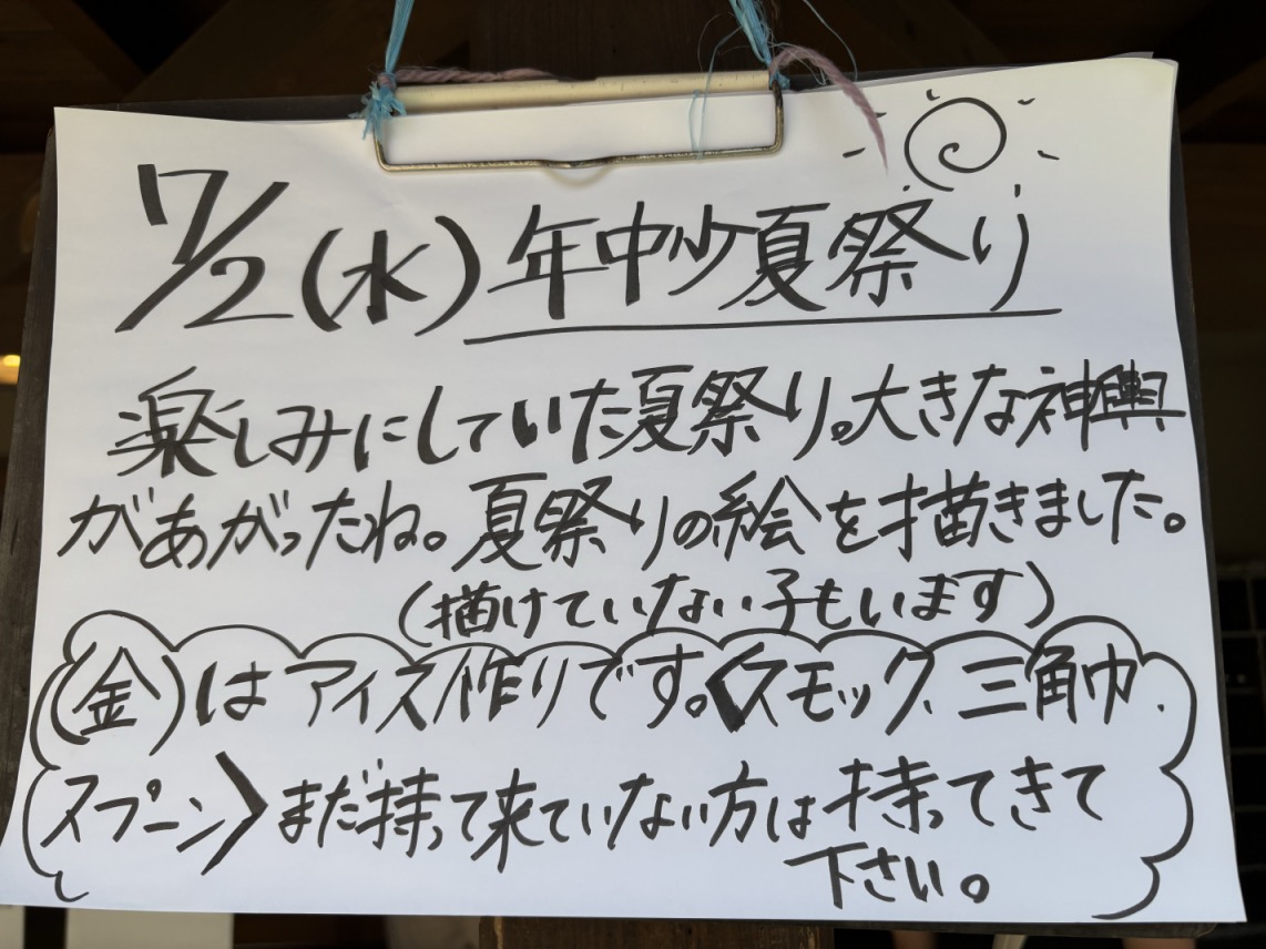 夏祭り、第二弾 07/02/2025 最終更新日時 : 07/02/2025 ozasa-admin [Show slideshow] 1 2 3 ► 年中少の夏祭り。今日も楽しかった。バラ組さんもかけ声で応援。保護者の方も一緒に踊ったり、力水をしてくれたり、ありがとうございます。年長さんも、も一度力水したくなって、後から。歓声がいっぱい。勢い余って寝転がる子も。 \ 最新情報をチェック / FacebookXBlueskyHatenaCopy