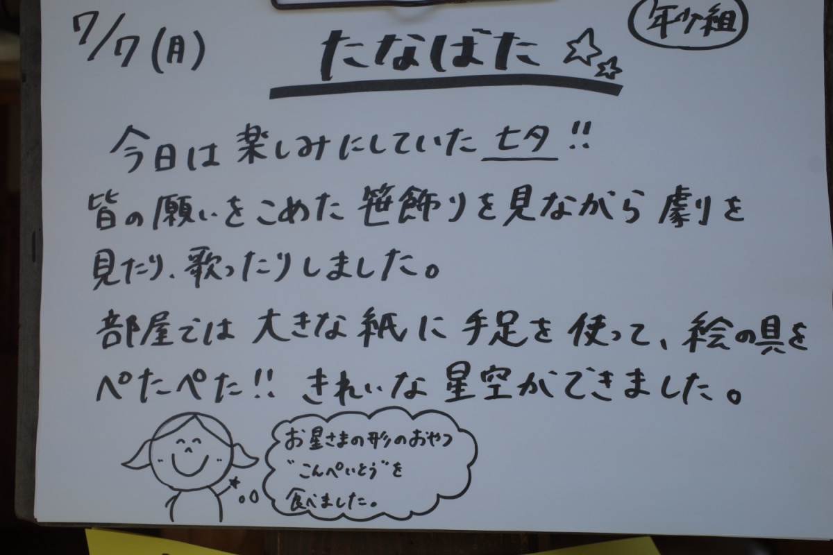 たなばたとこんぺいとう 07/07/2025 最終更新日時 : 07/07/2025 ozasa-admin [Show thumbnails] 朝集まって七夕のお話を。年中さんは、近くの公園まで散歩。 後でみんなで金平糖をいただきました。(今日は金平糖の日でもあるみたいです) \ 最新情報をチェック / FacebookXBlueskyHatenaCopy