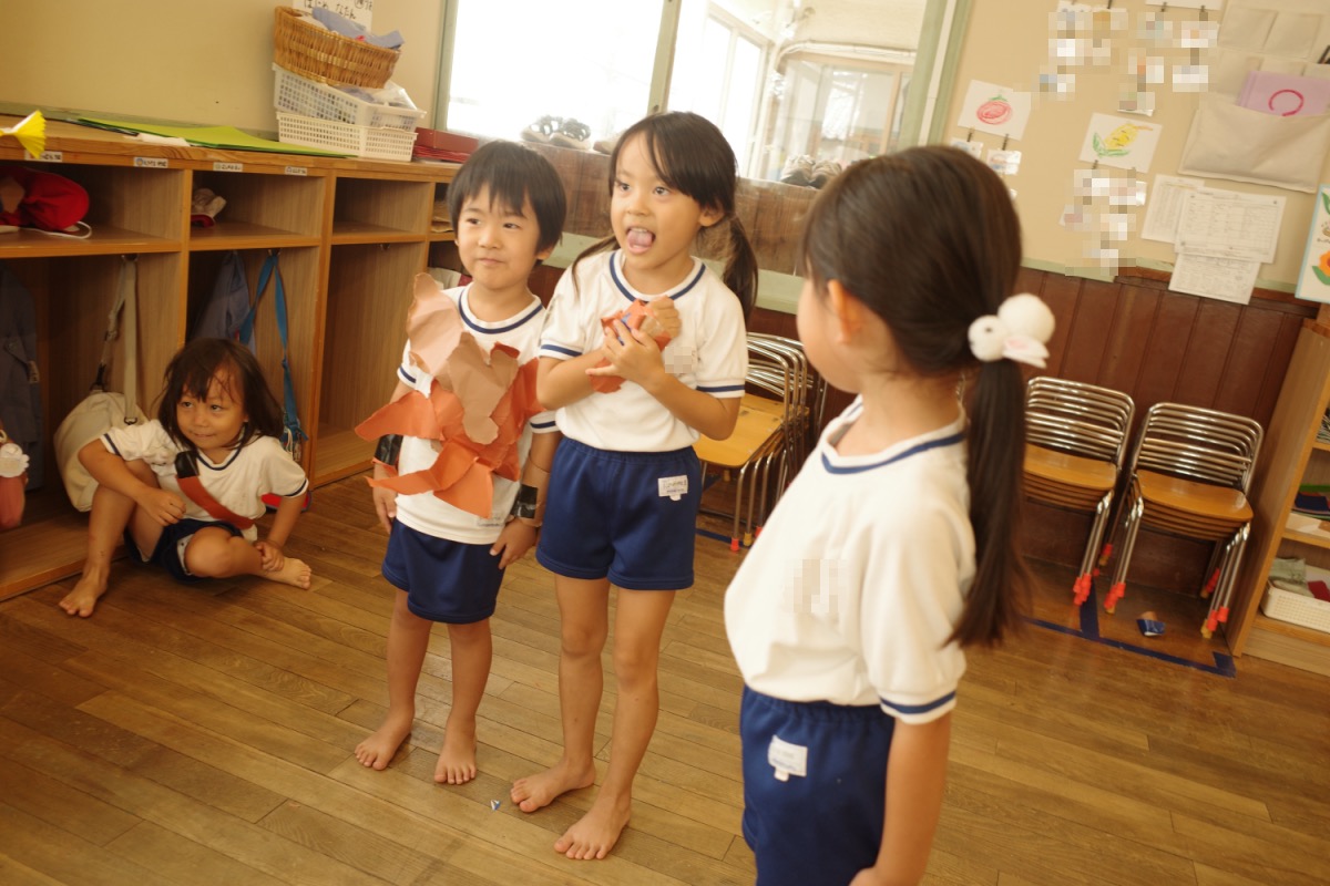 海苔巻き、ごろごろ 09/26/2025 最終更新日時 : 09/26/2025 ozasa-admin [Show slideshow] 1 2 3 ► 年少少さんは、お寿司屋さんごっこ。年中さんは、木の葉むしと枯れ木に変身。地面に落ちた木のポーズなど。もう一クラスは尺取り虫?ボーリング。目玉を下にしたしゃくとりむしピンを並べて、新聞紙を丸めたボールで。お昼休みには、風呂敷やビニールで作ったバルーンらしきもので、ごっこ遊び。憧れです。年少さんは,お化けと戦う運動会種目を。年長は、バルーンの練習したり。自由時間に型紙に丁寧に絵の具で色づけ。 \ 最新情報をチェック / FacebookXBlueskyHatenaCopy