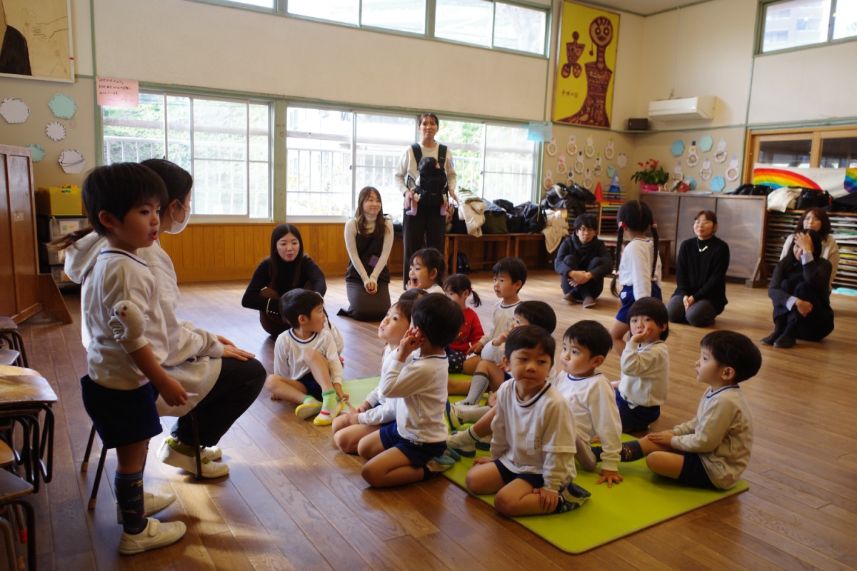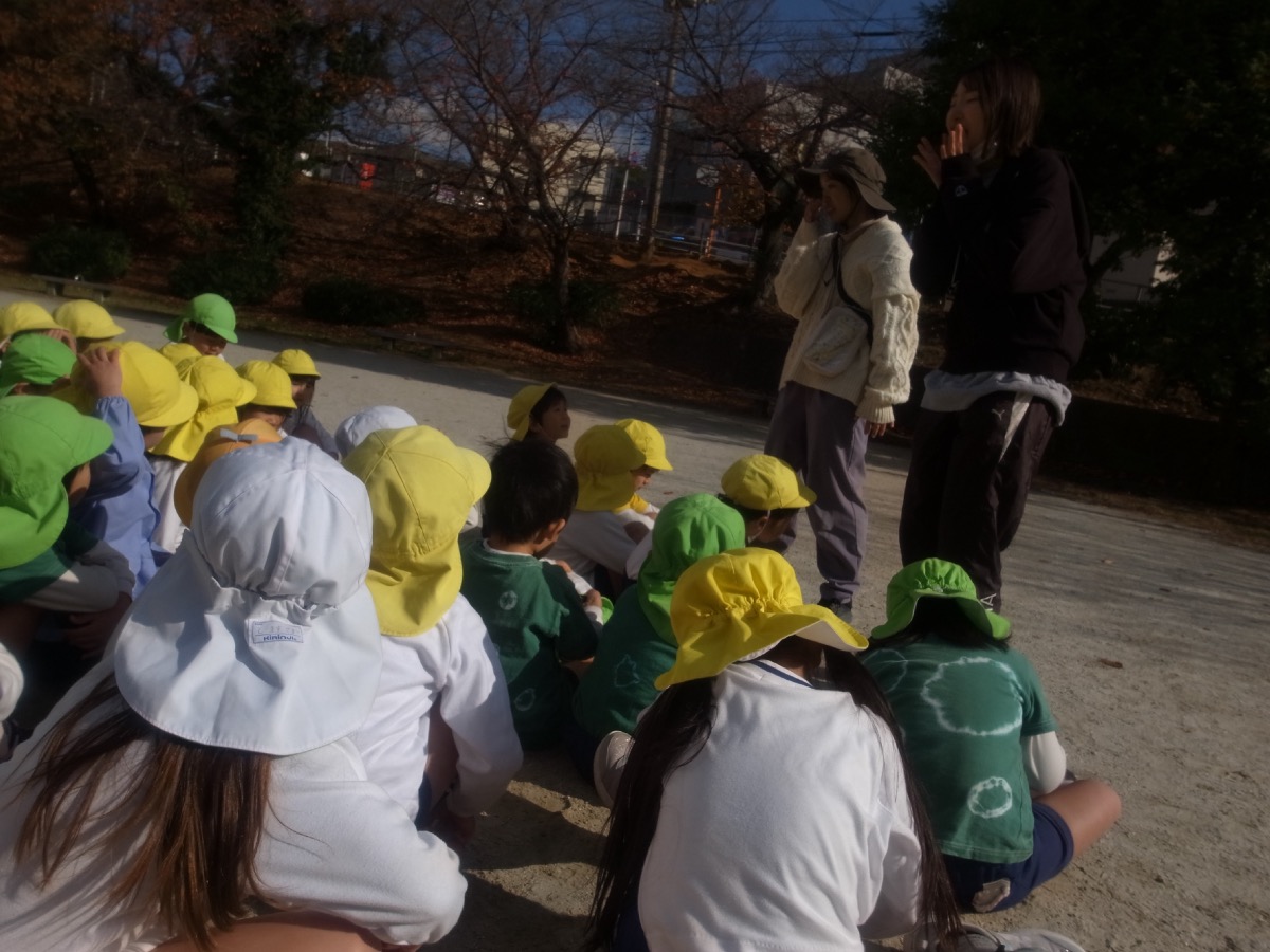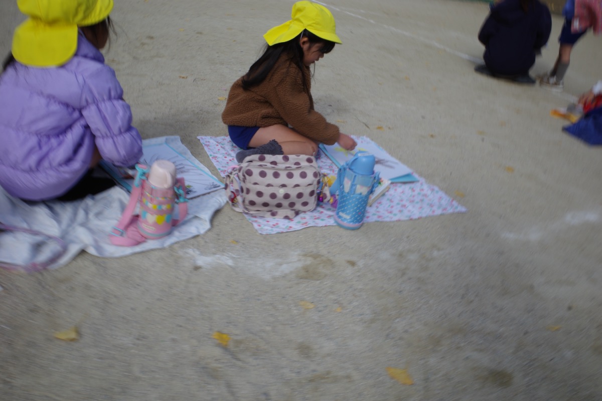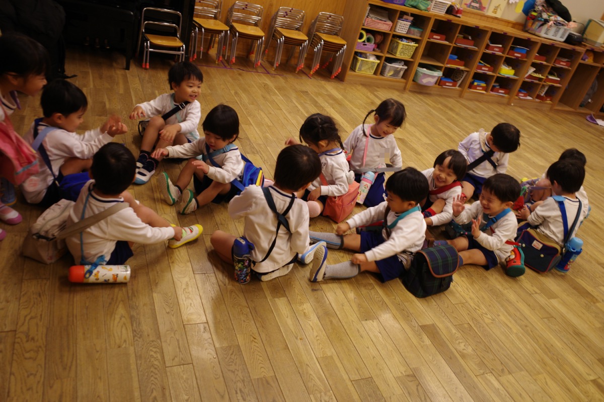 しばらくぶりに、皆でマラソン、ばら組さんは、園庭を走りました。年少さんは、お父さんお母さんといっしょに遊んだりお昼を食べたり。保護者の方はその後、グループに別れいろいろお話ししました。年中さんはクリスマスツリー作り。中には、帽子がわりに被る子も。年長さんは北公園まで遊びに行きました。のびのび!!