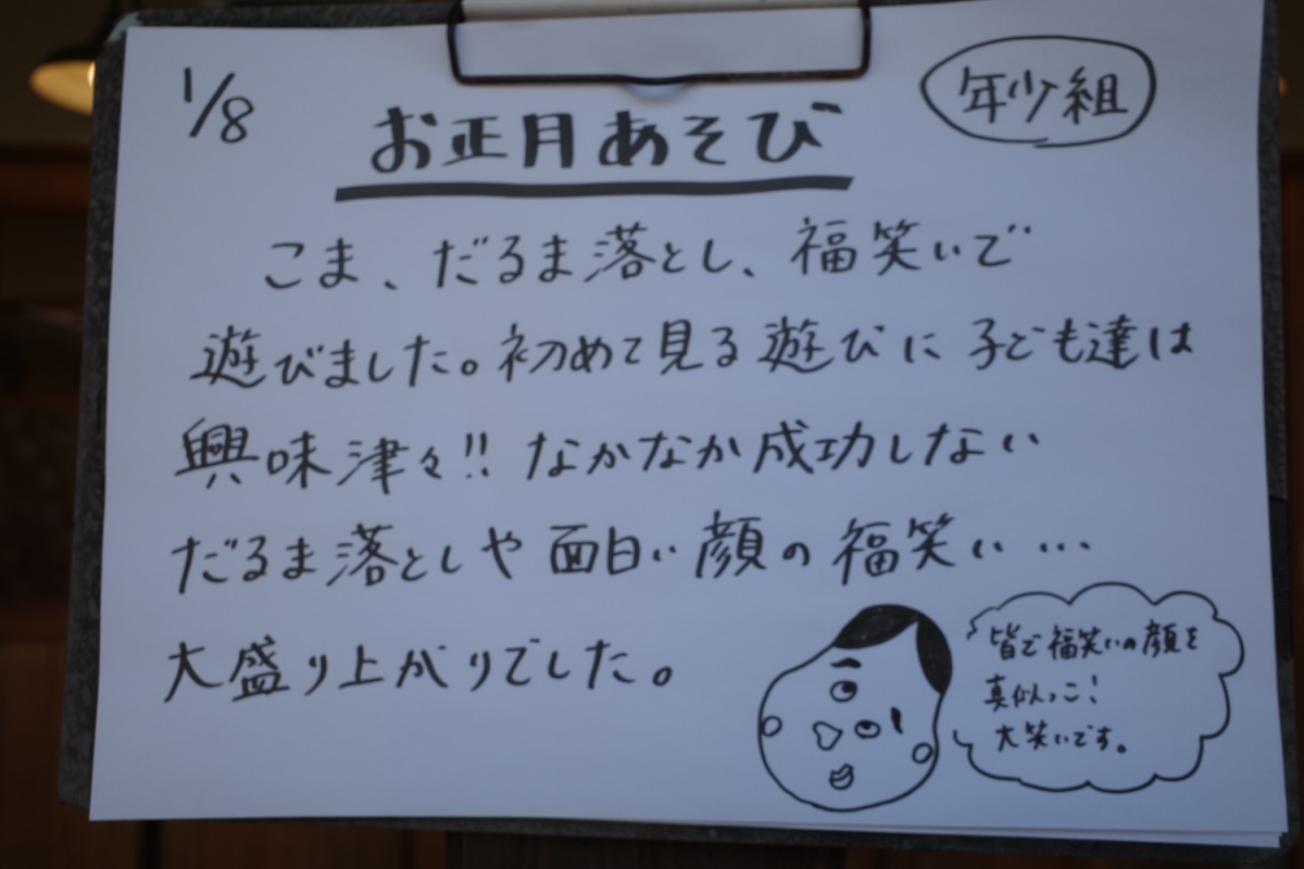 お正月遊び 01/08/2026 最終更新日時 : 01/08/2026 ozasa-admin [Show slideshow] クラス写真を撮った後は、お正月あそびや、外遊びなど。寒いけど、お日様の光があれば気持ちいい一日。 \ 最新情報をチェック / FacebookXBlueskyHatenaCopy