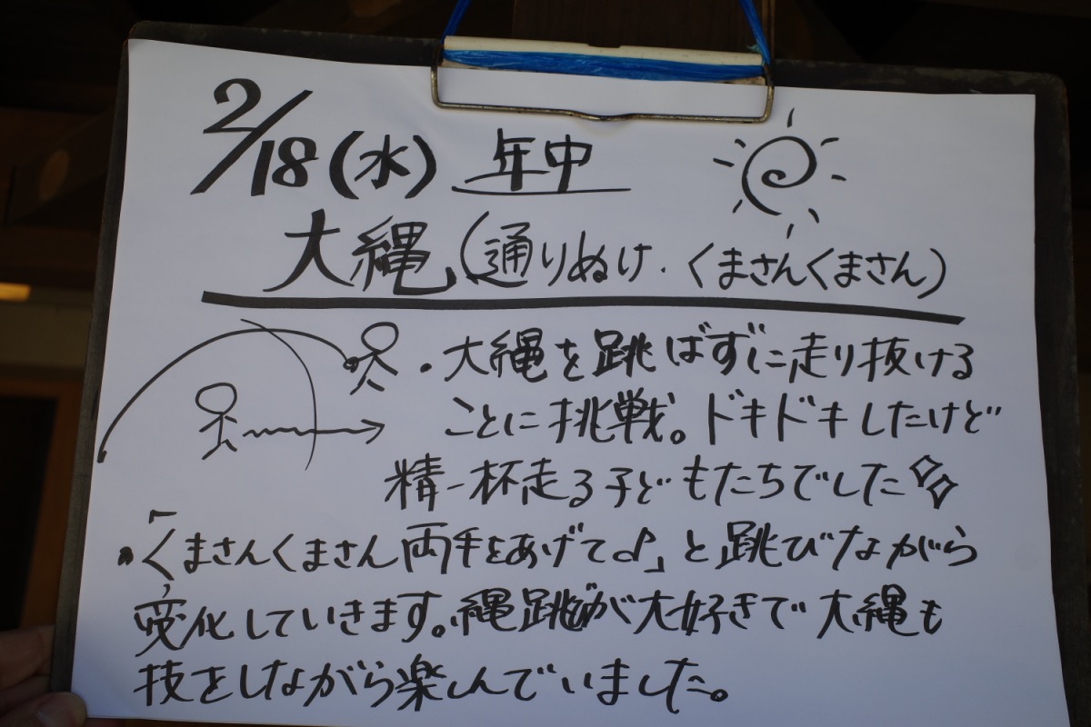 おみせやさん、じゃんけん、じがぞう 02/18/2026 最終更新日時 : 02/18/2026 ozasa-admin [Show slideshow] 1 2 3 ► 年少さんは、入れ替えでおみせやさん参観とねことねずみ等。年中さんは、リトミックや大縄くぐりしたり、自画像をみせたり、最後は一年の思いでをみんなで。年長さんは、卒園式の練習や王様じゃんけん。ばら組さんは、絵本借り。園庭では、切り株をコンロに見て立てて料理。ミミズやテントウムシを見つけて。源平咲きの梅の花もきれいです。 \ 最新情報をチェック / FacebookXBlueskyHatenaLINECopy