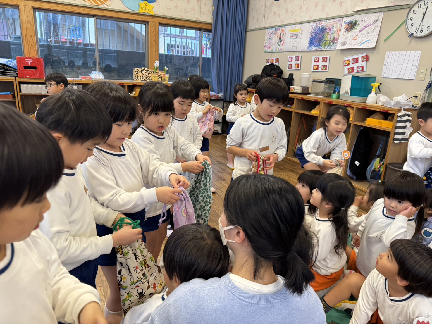 なわとび袋、完成 02/27/2026 最終更新日時 : 02/28/2026 ozasa-admin [Show slideshow] 1 2 ► 年中さんは、赤い糸で縫って、今日は紐通しをして、縄跳び袋の完成。遊びに来てくれたたんぽぽさんに袋を見せる姿、できを見てくれるたんぽぽさんの姿がほほえましい。終日の雨もあり、ホールで教室で思い思いに遊びました。 ※本日・昨日の掲載写真に欠落や別日の写真がありました。再掲示してます。 \ 最新情報をチェック / FacebookXBlueskyHatenaCopy