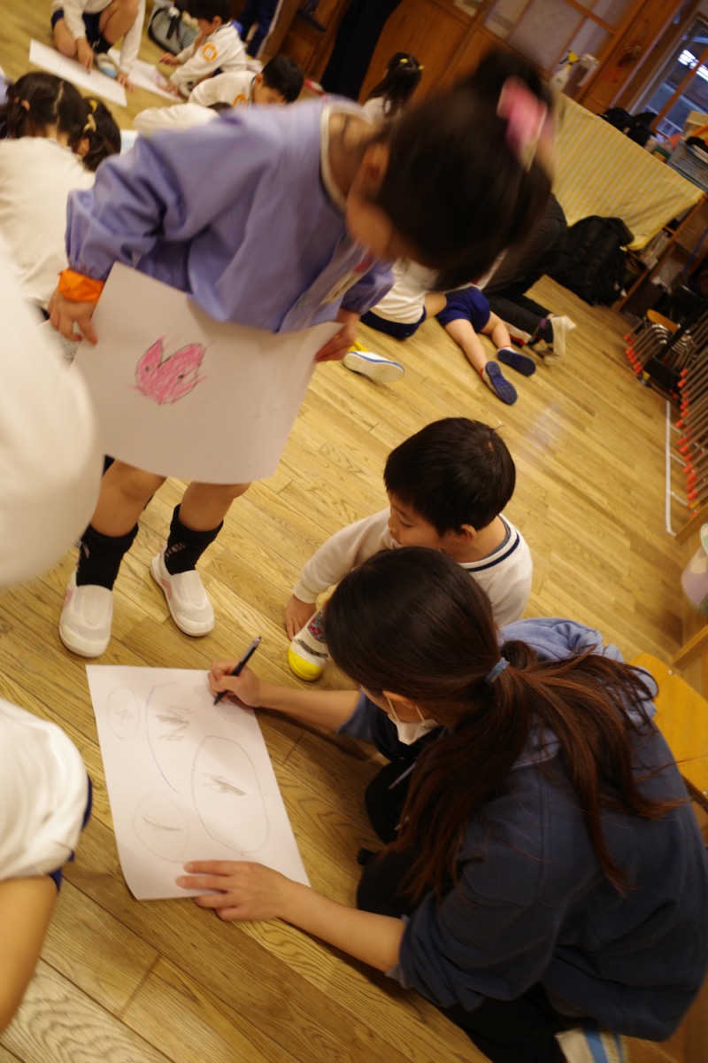動物園にはいけなかったけど、"どうぶつえん"にいきました?! 03/06/2026 最終更新日時 : 03/06/2026 ozasa-admin [Show slideshow] ◄ 1 2 3 朝から雨。雨だれを楽器に朝から遊んでました。動物園にはいけなかったけれど年中と年少の”どうぶつえん”?に行ってきました。入場券を渡して、カバやキリンや狸を見たり、ウサギに餌をやったり。年中さんは、虹を完成させ、その横でみんなでお昼を。年長さんもやってきて一緒に遊びました。年長さんのあるクラスは、チョークで床一杯落書きしたり(言ったときには、雑巾で拭き上げた後でした、でも膝小僧はチョークだらけのまま)。ばら組さんは昨日の写真。年長さんがバルーンをやっているのを入りたいなーと見ていたら、仲間に入れてくれました。 \ 最新情報をチェック / FacebookXBlueskyHatenaCopy